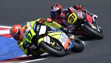 Sin Borja Gómez -lesionado en entrenamientos- ni Mattia Rato -que se había ido al suelo en la vuelta de calentamiento-, se apagaba el semáforo con una gran salida de Roberto García, que le permitía ponerse segundo a rueda del poleman Alberto Surra, con Francesco Mongiardo cogiendo la tercera posición por delante de Alberto Ferrández, Mattia Casadei y Unai Orradre. Por atrás caía Gianpaolo Di Vittori.