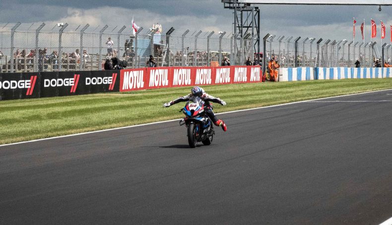 Con cuatro victorias seguidas -superando su mejor racha anterior con Yamaha- y como líder de la general se plantaba en Donington Park, donde logró su primer podio allá por 2018 y también su primer triplete en 2022. Su adaptación a la BMW M 1000 RR estaba completada y, con ella, salió a jugar a su parque favorito, al abrigo de los aviones.
