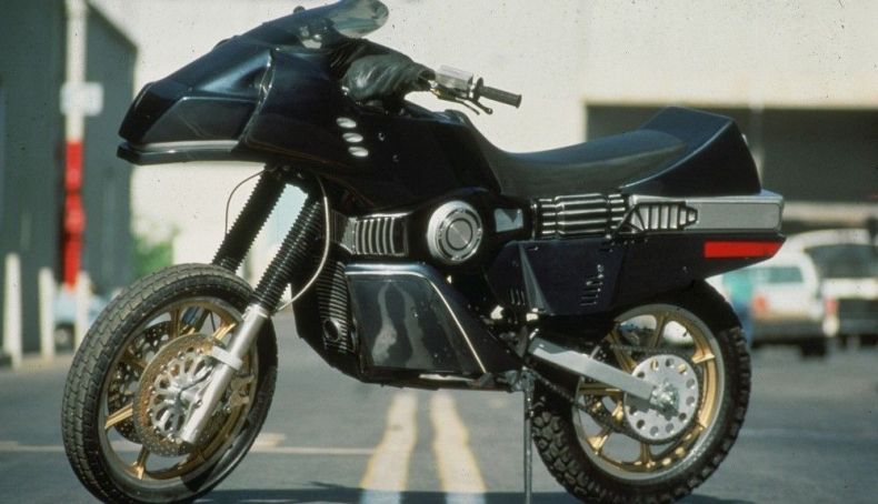 En este caso cabe señalar que no se eligió un modelo existente tal y como se hizo en El Coche Fantástico, con un Pontiac Trans-Am, sino que se optó por un diseño futurista creado por Andrew Probert, quien había trabajado en Star Trek y en la creación de los vehículos que aparecen en Blade Runner. Eso sí, como base se utilizaron varias motos punteras de la época: desde la Honda XL500 fabricada en 1983 del episodio piloto, hasta la Honda XR500 de 1984.