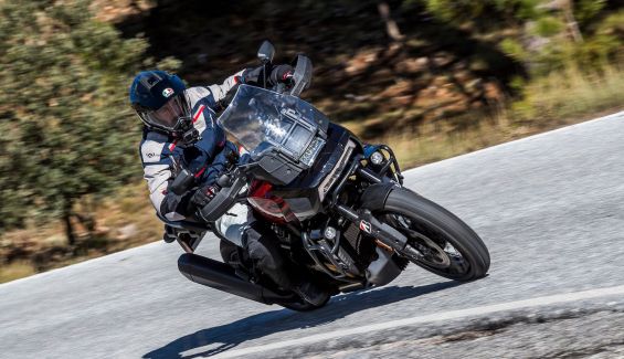 La protección aerodinámica es la adecuada y la parte central estrecha, lo que, unido a un motor con prestaciones notables, hace que se convierta en una gran moto para viajar, no sólo en autopista, sino especialmente en carreteras secundarias en las que siempre tienes respuesta sin tener que abrir el gas a fondo. Los frenos son potentes, pero necesitas algo de fuerza para balancear la Pan America de lado a lado, aunque una vez en la línea tiene un gran aplomo a cualquier velocidad, y dependiendo del modo de conducción y del ajuste de las suspensiones un comportamiento más adecuado al tipo de terreno y conducción elegido. La moto pesa más de 260 kg en nuestra báscula, lo que provoca inercias, pero el funcionamiento de las suspensiones las mitiga en gran medida.