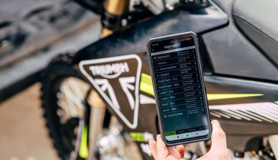 Para este último, Triumph propone una decena de mapas preconfigurados que atienden a diferentes necesidades, como el nivel de pilotaje del usuario (novato, intermedio y experto), el tipo de terreno (arena, duro o suelto) y el estado del mismo (seco o mojado). También incluye algún que otro mapa extra, como es el caso del RC Signature, que está disponible para la TF 450RC, y el Akrapovic, para la TF 250X, cuando, lógicamente, esta lleve equipado un escape de la marca eslovena.