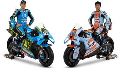 Horas después ha sido el Trackhouse Racing el que ha desvelado sus decoraciones para este curso. Sí, en plural. El equipo estadounidense, el más joven de la parrilla, ha enseñado en Milán dos diseños de una tacada: el que llevarán casi toda la temporada Raúl Fernández y Ai Ogura, y el especial de Gulf para los grandes premios de Tailandia, Brasil, Italia, Indonesia y Malasia.