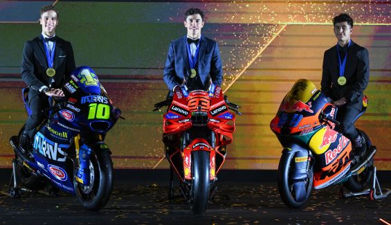 Marc Márquez, Diogo Moreira y José Antonio Rueda, los campeones de MotoGP 2025
