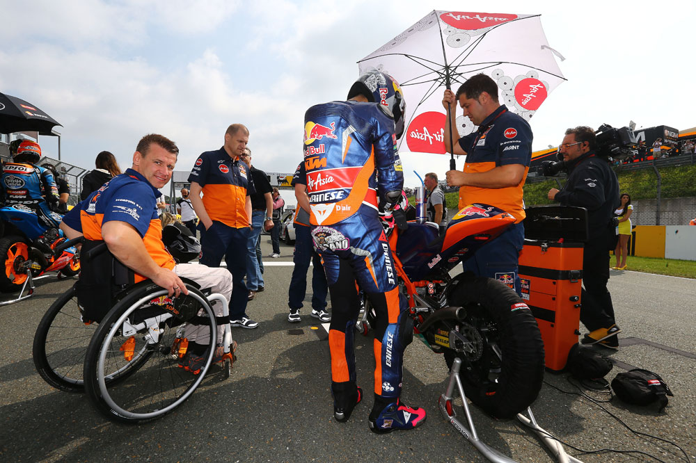 «Moto2 es un gran campeonato, donde hay una enorme igualdad. El último paso positivo fue en 2013 cuando se estableció el peso mínimo de 215 kg para piloto, moto y equipo (mono, casco, etc.). El nivel es muy alto. Los pilotos que han dado el salto a MotoGP lo han hecho muy bien. Solo tienes que ver las actuaciones de Márquez o Bradl. Los dos enseguida se acostumbraron al nivel que hay en MotoGP. Ello demuestra que Moto2 es una gran escuela para luego dar el salto a la categoría reina. Aunque estoy de acuerdo en que en el futuro se debería dar otro paso. Puede que sea mejor emplear un reglamento como en Moto3. Ello atraería a más fábricas. Creo que, en estos momentos, el reglamento de Moto3 es el mejor de las tres categorías. Estas reglas deberían usarse en todas las clases del Mundial».