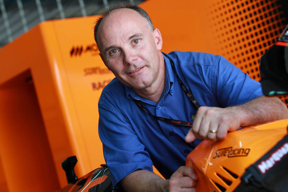 «En lo que a la técnica se refiere yo me inclino por la diversidad. El deporte del motor no es individual, sino que atañe a todo un conjunto. El fabricante tiene que darle al piloto un buen material que le permita ganar. Para que haya competencia, lo ideal es que se enfrenten diferentes fábricas, lo que ocurre es que la situación actual no permite muchas alegrías. Con la que está cayendo el reglamento de Moto2 es la mejor solución en cuanto a relación prestaciones-costes para un fabricante de chasis como nosotros. Pero si se cambiase el reglamento y se permitiese la participación de más fabricantes en lo que al propulsor se refiere, yo abogaría por motores con cilindros de 250 cc cada uno. Si se quiere lograr una potencia aceptable, diría que lo ideal sería un tricilíndrico de 750 cc. Lo que no sé es si esto sería rentable para las marcas y cuántas estarían dispuestas a participar. Yamaha tiene un tres cilindros para sus modelos de serie, al igual que Triumph y MV Agusta. Otra opción sería producir bicilíndricos de 500 cc, aunque solo tendrían unos 110 CV. Lo que significaría que el salto a MotoGP sería muy grande, pues allí hablamos de 1.000 cc y 260 CV. También se podría optar por el límite de 600 cc y permitir usar los motores de todos los fabricantes, lo único es que habría que limitarlos todos a un cierto nivel. Yo soy de los que quisieran ver un reglamento algo más abierto. Estamos hablando de MotoGP, las marcas deben ser capaces de demostrar en la pista que son capaces de fabricar buenas motos».