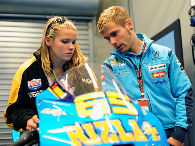 La piloto americana tuvo la oportunidad de charlar y cambiar impresiones con Loris Capirossi y Álvaro Bautista, quien le explicó algunos detalles técnicos de la moto.