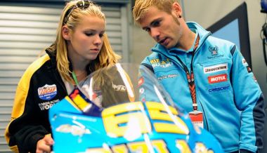 La piloto americana tuvo la oportunidad de charlar y cambiar impresiones con Loris Capirossi y Álvaro Bautista, quien le explicó algunos detalles técnicos de la moto.