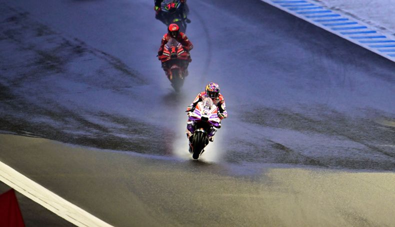 Y, si faltaba alguna prueba de que Jorge Martín ha entrado en fase de flujo, el cielo se encargó de disipar cualquier atisbo de duda cuando empezó a descargar su líquido elemento en el momento exacto para implantar el caos más absoluto en MotoGP; generando una situación un tanto dantesca en la que casi todos los pilotos entraron a cambiar de moto antes de completar la primera vuelta.