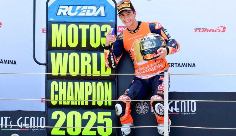 Quiles hacía la long lap en la penúltima vuelta, pero justo después salía una bandera roja para poder atender a Muñoz -que se había hecho mucho daño en la pierna-, lo que convertía automáticamente a José Antonio Rueda en campeón del mundo de Moto3 2025.