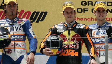 La prueba se ha disputado en seco contra todo pronóstico ya que en los entrenamienos del viernes y del sábado el agua marcó la pauta. El finlandés partía desde la pole position y ha sabido jugar sus cartas en una carrera muy inteligente que ha acabado en victoria. Kallio ha querido demostrar que sigue en plena forma y se ha impuesto a los pilotos del equipo Aspar y a su excompañero de equipo Gabor Talmacsi, que ha colocado a la primera Honda en cuarta posición.