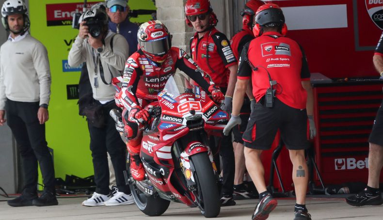 Bueno, son cosas que pasan, una vez más. En la MotoGP se va muy rápido, un mínimo error o un mínimo cambio de velocidad lo notas muchísimo. Y, en el qualy, venía tirando esa tercera vuelta, creo que ellos no lo esperaban, y ha sido ahí, en esa recta de atrás, donde han frenado muy pronto y casi golpeo a Bezzecchi, porque ha frenado en un sitio donde no me lo esperaba, pero él tampoco sabía que venía. Cometió un error en ese caso, será penalizado por ello, y sin más.