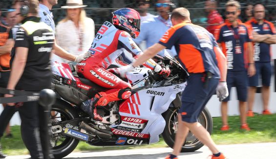 Riesgo. Lo he dicho en el parque cerrado: están medio pasito por delante y en la Sprint Race he decidido arriesgar e intentar suplir ese medio pasito a ver qué pasaba, y en esas últimas vueltas he decidido, cuando he visto que Martín tenía el Long lap, dar un poco el ataque para ver si podía coger a Pecco. He arriesgado demasiado, pero también es difícil controlarse. Evidentemente hoy me han podido esas ganas, pero estoy muy contento con mi sábado.