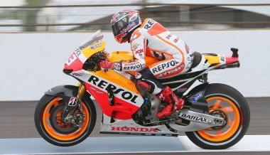 Marc Márquez ha conseguido la pole de MotoGP en el Gran Premio de Indianápolis, con un tiempo de casi un segundo más rápido que la del año pasado. Jorge Lorenzo, segundo, ha terminado a más de medio segundo del de Honda, con Dani Pedrosa, tercero, completando la primera línea de salida. A medio segundo se ha situado también Cal Crutchlow, cuarto, seguido de Álvaro Bautista. Valentino Rossi, noveno, está muy lejosy ha sido superado por Nicky Hayden, Bradley Smith y Stefan Bradl, que ha sufrido una caída en los últimos instantes, aunque sin consecuencias.