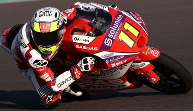 Sergio García defendía bien su pole con Ayumu Sasaki a rueda. El que perdía alguna posición era Izan Guevara, que rápidamente se rehacía hasta superar al japonés para poco después dar cuenta de su compañero, asumir el liderato de la carrera y cambiar el ritmo para tratar de romper el grupo, con García pegado a su rueda.