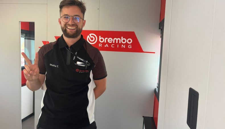 Cuando hablamos de frenos en el Mundial de MotoGP sólo hay un nombre, el de Brembo. El fabricante italiano, que también es propietario de firmas del segmento de las motocicletas como las llantas Marchesini, los equipos de freno J.Juan y AP Racing, las pastillas SBS o la firma de suspensiones Öhlins, equipa la totalidad de las parrillas, con especial incidencia en MotoGP, en la que el equipamiento es realmente especial al instalarse frenos y pastillas de fibra de carbono. Mattia Tombolan, un joven ingeniero de Vizencia de tan sólo 32 años, ha trabajado como ingeniero de pruebas en el departamento de desarrollo de frenos de Brembo, y actualmente trabaja en MotoGP.