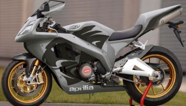 Ésta es la verdad desnuda, pero ahora hay que vestirla. Parece que Aprilia ha propuesto una «tormenta de ideas» exterior a la marca para buscar la estética final de la V-4, y ha encargado proyectos de carrocería a varios diseñadores. Sobre las ideas de Sergio Robbiano (esto no es seguro, pero parece ser así), nuestro colaborador habitual Jean Marie Guerin ha compuesto este fotomontaje que te mostramos. Puedes ver un frontal muy afilado, con cuatro faros integrados muy en la línea de las RSV de la marca, un colín exageradamente largo sin asiento trasero a pesar de los reposapiés para el pasajero que sí están presentes y una carrocería cerrada (tipo AERO se llamaba en tiempos de la Ducati Paso o de la Honda CBR 1000 y 600 F de hace dos décadas).