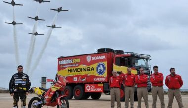 Espectacular. Es el mejor calificativo que podemos utilizar para describir la presentación del equipo Combat-Soldados.com, que este año se enfrenta a su quinta participación en el rally más duro del mundo. Una exhibición aérea y una prueba de aceleración “KTM 525 Dakar vs reactor C-101” fueron los platos fuertes del día, casi nada.