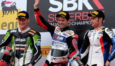 La brillante actuación de Sykes le valió para ser segundo y estar en un podio por el que pelearon Leon Haslam (BMW Motorrad Motorsport) y Max Biaggi (Aprilia Racing), siendo finalmente para el británico.