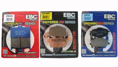 La marca EBC ofrece una amplia gama de pastillas de freno para scooters, con tres tipos diferentes. Todos están confeccionados bajos un mismo estándar de calidad y un contenido precio, aunque cada tipo está especialmente recomendado para un uso en concreto, en función de las características del vehículo en cuestión, tanto por peso como por prestaciones del motor.