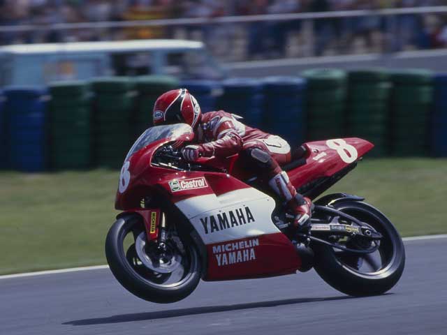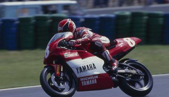 Las carreras pasaron sin resultados, y en la quinta, Imola, llegaron los primeros puntos: fue séptimo. Y de nuevo, sequía, hasta que cuatro carreras después, en Spa, bajo el agua, terminó tercero tras Gardner y Lawson, arrebatando el podio al local De Radigues por siete décimas. La celebración de Randy fue de las suyas, convertido en un auténtico payaso rodante, con cabriolas y piruetas por doquier… Entró en racha con una buena serie de resultados: cuarto en Yugoslavia, sexto en Francia, y un par de carreras más en los puntos. El resto del año a cero, y el resultado final, décimosegundo, la peor clasificación en sus 10 años en 500.