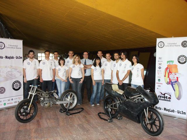 El equipo de la UC3M ha presentado recientemente un prototipo en un estadio inicial de construcción. "La fase de desarrollo y puesto a punto va a ser la más complicada pero también la más gratificante, porque tenemos muchas ideas que probar en la moto antes de presentarla a la competición", comenta el Director Técnico, José G. Pérez Alonso, que realiza el doctorado dentro del grupo de investigación MAQLAB, del Departamento de Ingeniería Mecánica de la Universidad. La competición final, con su evaluación correspondiente, está prevista que se lleve a cabo en la Ciudad del Motor de Aragón a principios del próximo mes de octubre, coincidiendo con el Campeonato de España de Velocidad. El premio al que aspiran, el mejor proyecto industrial, es de 6.000 euros y un "stage" para los integrantes del equipo en empresas industriales del sector o empresas de competición