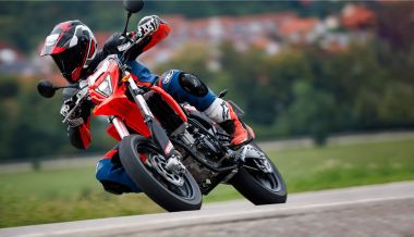 El chasis proporciona una agilidad sobresaliente, y esta ligera supermoto se inclina sin ningún esfuerzo en cualquier tipo de curva. Llegas al máximo ángulo de inclinación en un instante y sin ningún esfuerzo, casi parece que trabaja por sí misma, sin tu intervención.