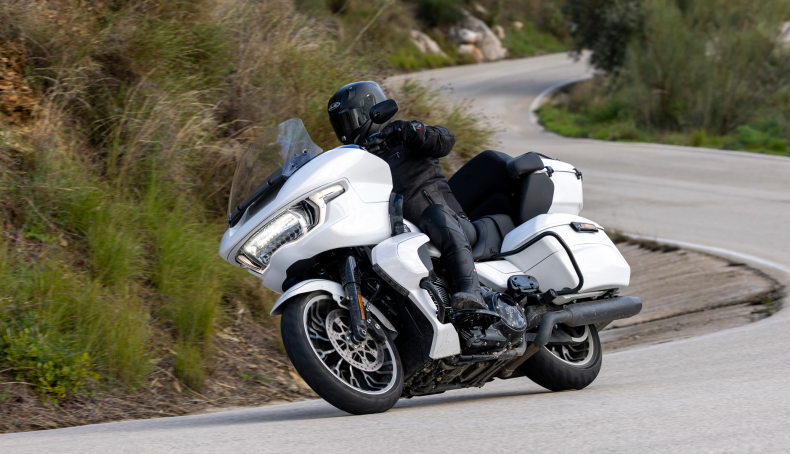 Podrías pensar que unas motos de estas características sólo tienen capacidad para rodar en línea recta por amplías autopistas y a una velocidad moderada, al fin y al cabo, es lo que estamos acostumbrados a ver en la imagen que el cine da de ellas, pero nuestras carreteras poco tienen que ver con las americanas, y lo cierto es que estas dos motos son capaces de desenvolverse con sorprendente agilidad cuando las rectas se retuercen, los carriles disminuyen y las amplias llanuras se convierten en desfiladeros. De hecho, esta presentación ha tenido lugar en la Sierra Málaga en carreteras estrechas y muy reviradas, que además las últimas lluvias torrenciales habían dejado en algunos tramos en un estado como mínimo delicado.