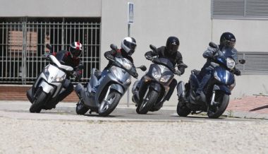 La última remodelación del conocido Beverly consuma la producción de un sccoter de «rueda alta» de primera clase. Por cualidades y configuración, más parece un scooter GT o «Gran Turismo», que un versátil ciudadano de media cilindrada, como mejor hace referencia su apellido Sport Touring. Y así se siente al tomar sus mandos. La calidad de su terminación, la elegancia de sus líneas, el gran hueco bajo el asiento (entran justitos dos cascos integrales), o el amplio parabrisas delantero, no esconden un scooter ágil y perfectamente adaptado al ambiente urbano. Su rueda alta y cotas son es un factor determinante en este sentido, y con una posición de conducción erguida, rápidamente le coges la medida para moverte entre el tráfico con gran soltura. Su mayor sensación de peso con respecto a sus rivales no es condicionante fundamental, si bien es cierto que a los mandos del Scoopy, por ejemplo, es más fácil y rápida la adaptación al conjunto. Y está mejor adaptado al denso tráfico ciudadano de las horas punta. Por otro lado, goza de una protección aerodinámica excelente, la mejor del lote gracias a su elevada pantalla y ancha parrilla delantera con deflectores de aire, y un elevado confort. Y eso que no es precisamente el scooter de estos cuatro que mas espacio ofrece para los pies en la plataforma. Pero luego su excelente asiento y solidez de chasis y progresividad y suavidad de suspensiones a alta velocidad compensan este detalle. Además, hay que valorar de él muy positivamente su mayor nivel tecnológico. Y es que a un eficaz sistema de frenada combinada equipada con ABS se suma un eficiente control de tracción denominado ASR. No es como los conocidos «al uso» entre las súper deportivas, y en su caso no busca bajar los tiempos por vuelta, sino aumentar la seguridad activa. El caso es que es realmente eficiente al acelerar desde parado por ejemplo sobre firme mojado o deslizante, o de ambos, como suele ocurrir sobre los pasos de cebra de nuestras ciudades en días lluviosos, pues controla perfectamente la tracción de la rueda trasera en todos los casos. Eso si, su precio de acceso también es superior al de sus rivales.