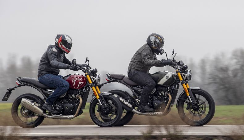 A parte de los detalles estéticos camperos de la ‘crossover’ (protectores para el faro, radiador y cárter, cubremanos, el manillar más alto con almohadilla central o un guardabarros delantero más largo), sus dimensiones son en general más grandes, con llantas de 19 pulgadas por las 17 de la Speed, una altura de asiento 45 mm superior, mayor distancia entre ejes y un peso lleno verificado de 11 kg más. Además, la Scrambler tiene un disco delantero de mayor diámetro y más recorrido de las suspensiones, para facilitar su uso fuera de la carretera. En definitiva, dos modelos con un diseño muy cuidado, con un ADN Triumph muy reconocible y una relación calidad-precio como nunca se había visto en Hinckley.