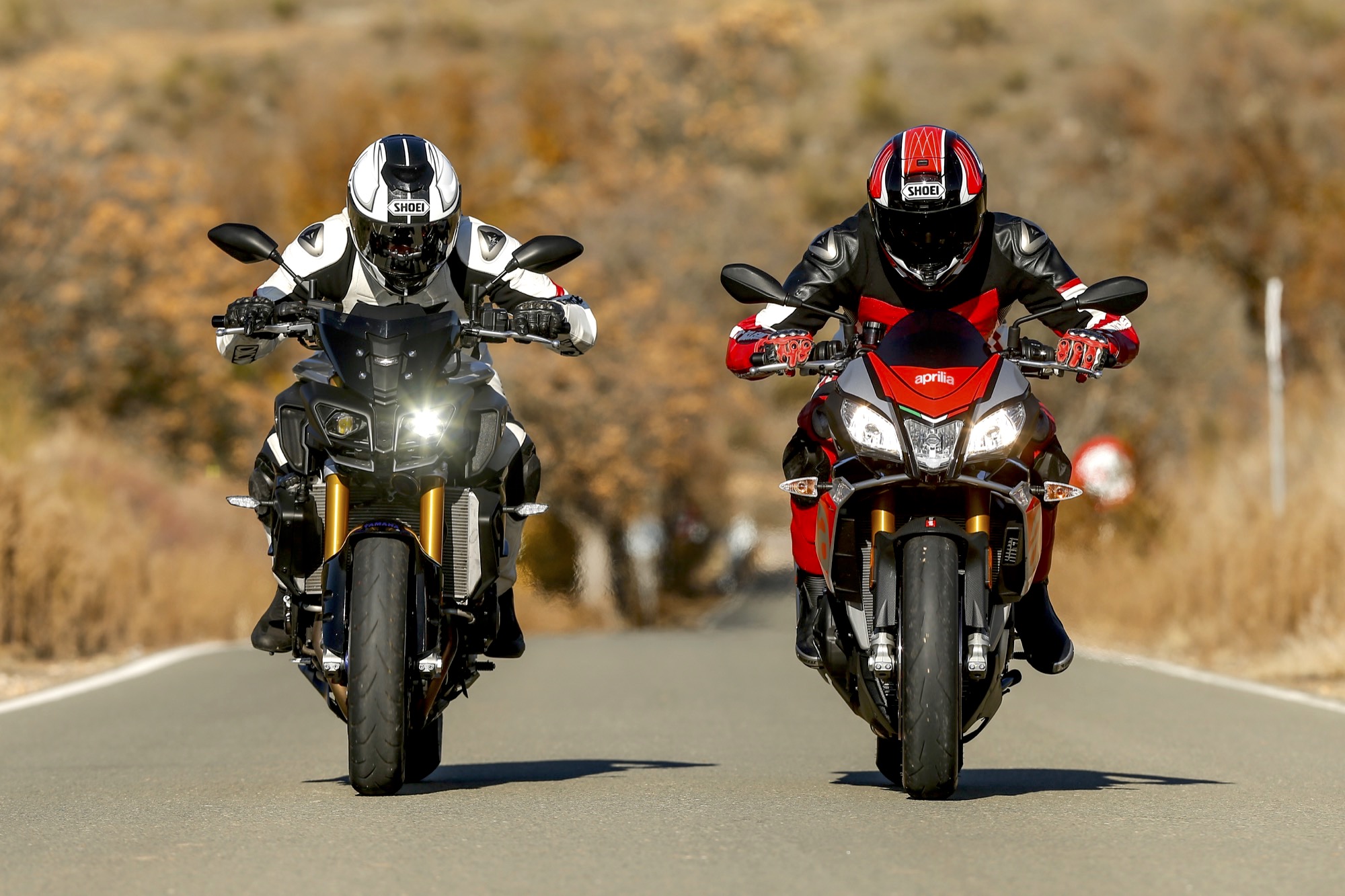 La verdad es que al probar cualquiera de estas dos motos se pueden echar en falta muy pocas cosas. Incluso me atrevería a decir que ninguna si las valoras desde el punto de vista deportivo. Además, sus manillares elevados y posiciones de conducción ciertamente naturales, las convierten en motos con un lado polivalente que no encontramos en sus homónimas más deportivas y que consigue que se adapten con corrección a la convivencia diaria en ciudad y a otros muchos ambientes asfálticos. Si es verdad que por su mayor a menor desnudez no son las motos más indicadas para realizar largos viajes, pero también es cierto que debido a sus excelentes cualidades deportivas pueden hacer que nos lo pasemos muy bien en carreteras plagadas de curvas e incluso que disfrutemos mucho en circuito, eso sí, siempre con el elevado grado de concentración que requieren estas motos, cuyas potencias máximas oscilan entre los cerca de 150 CV de la Yamaha y los 170 CV de la Aprilia, ambos datos verificados en nuestro banco de potencia.
