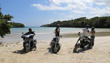 Tuvimos la oportunidad de galopar a lomos de una H-D Dyna Street Bob por los alrededores de Punta Cana, tocando playa e interior. Hicimos parada en una paradisíaca playa de las más recomendables de aquella zona porque está virgen de hoteles: Macao es su nombre, no lo olvides, por sus aguas turquesas y suaves olas para aprender a surfear, rodeada de un palmeral, te cautivará, te lo aseguro.
